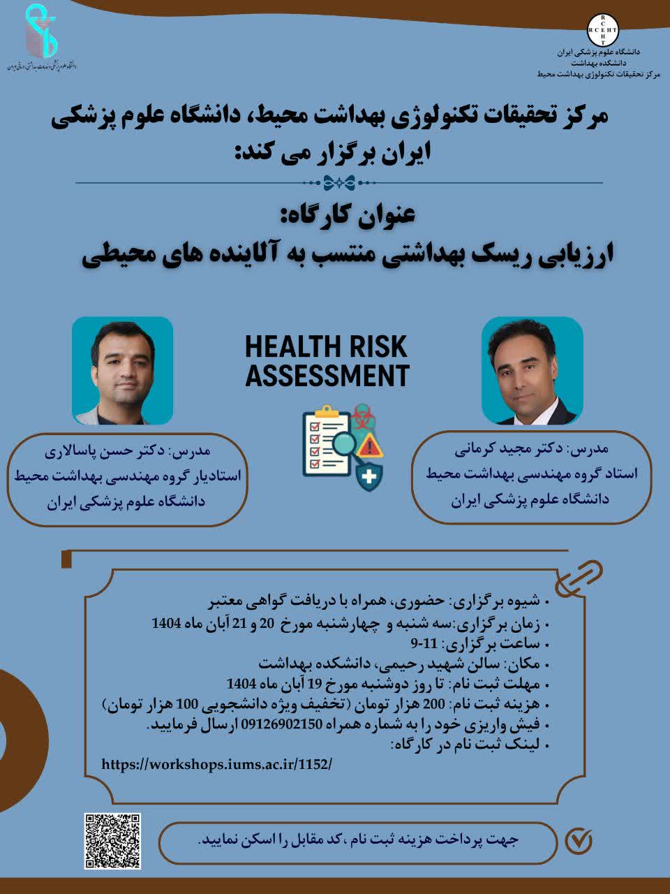 برگزاری کارگاه آموزشی ارزیابی ریسک بهداشتی منتسب به آلاینده های محیطی